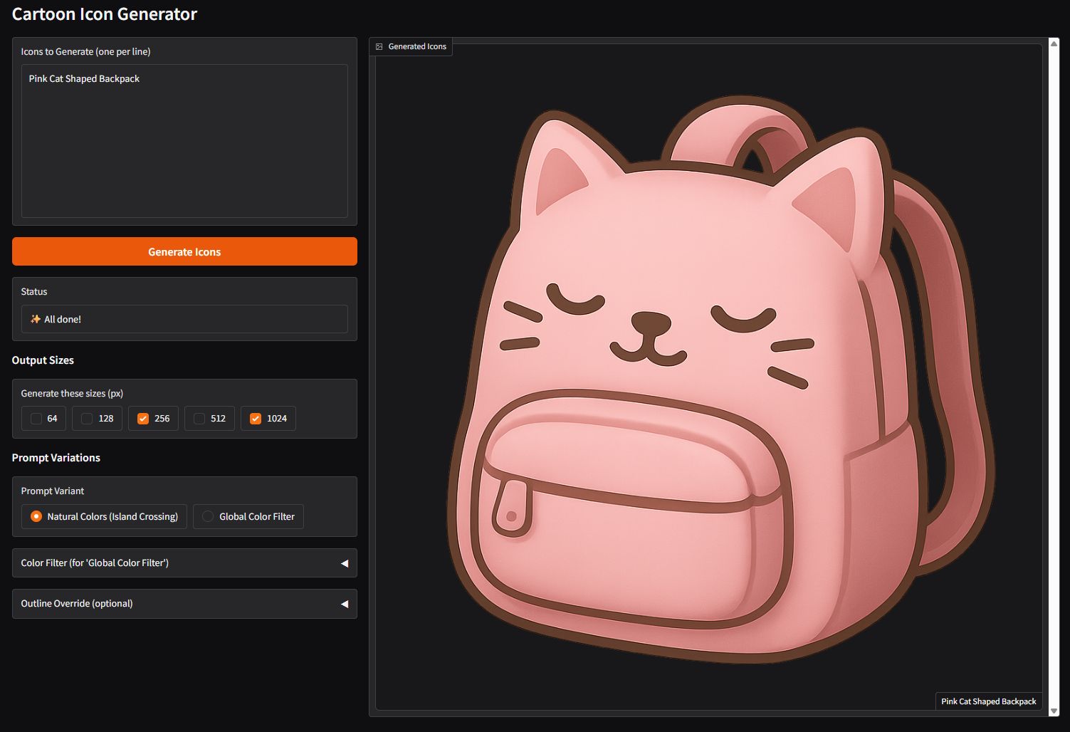Asset Generator is a script I built to automate bulk icon and image generation. I just list the icons I need, and it uses the OpenAI API to generate them in the background—no more waiting around. It also handles resizing and converting, so I get consistent, branded outputs every time. I use it for Cartoon Icon Gen, Blueprint Icon Gen, and 3D Preview Gen.