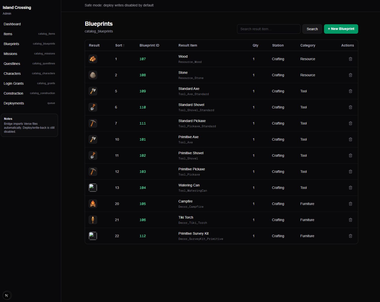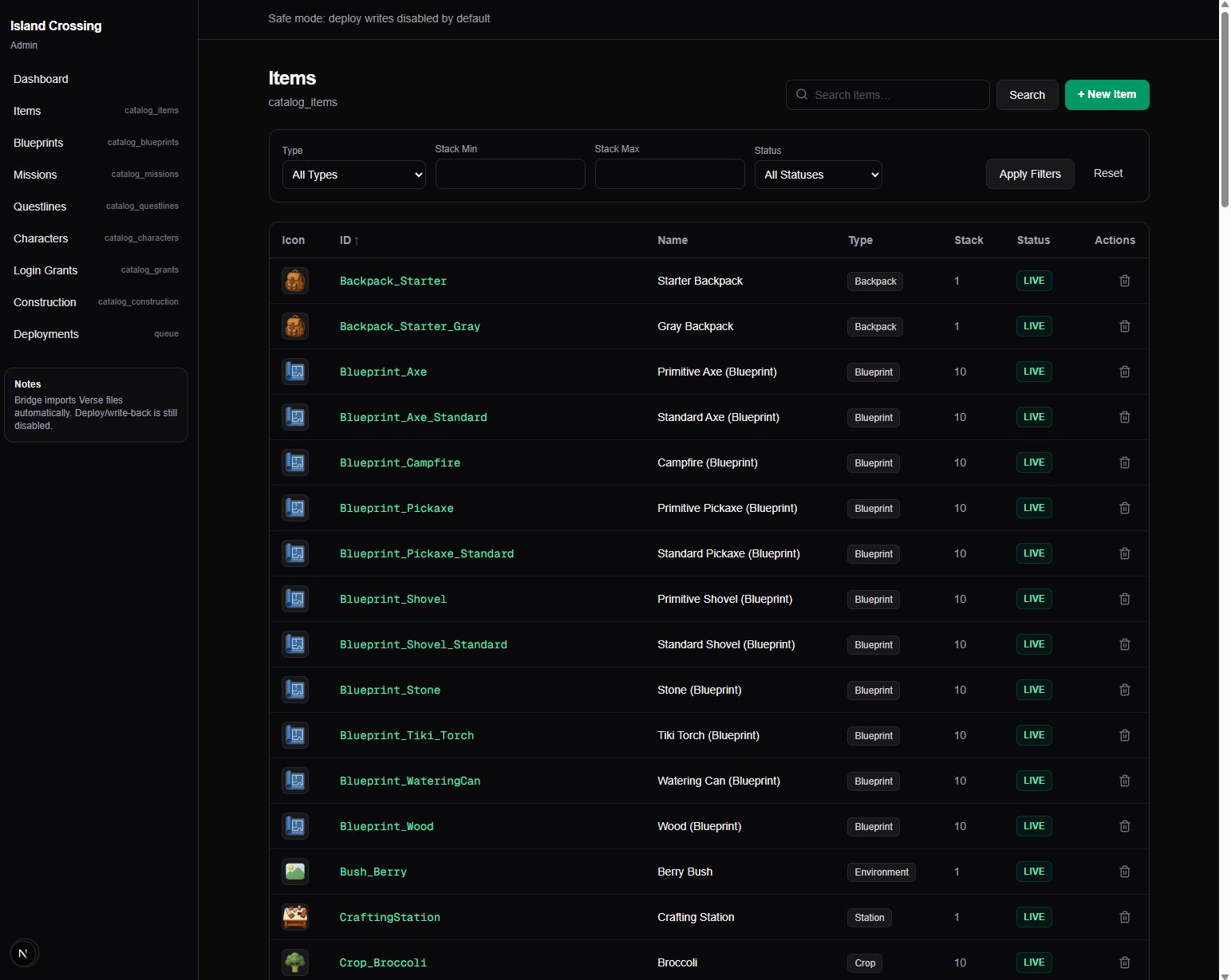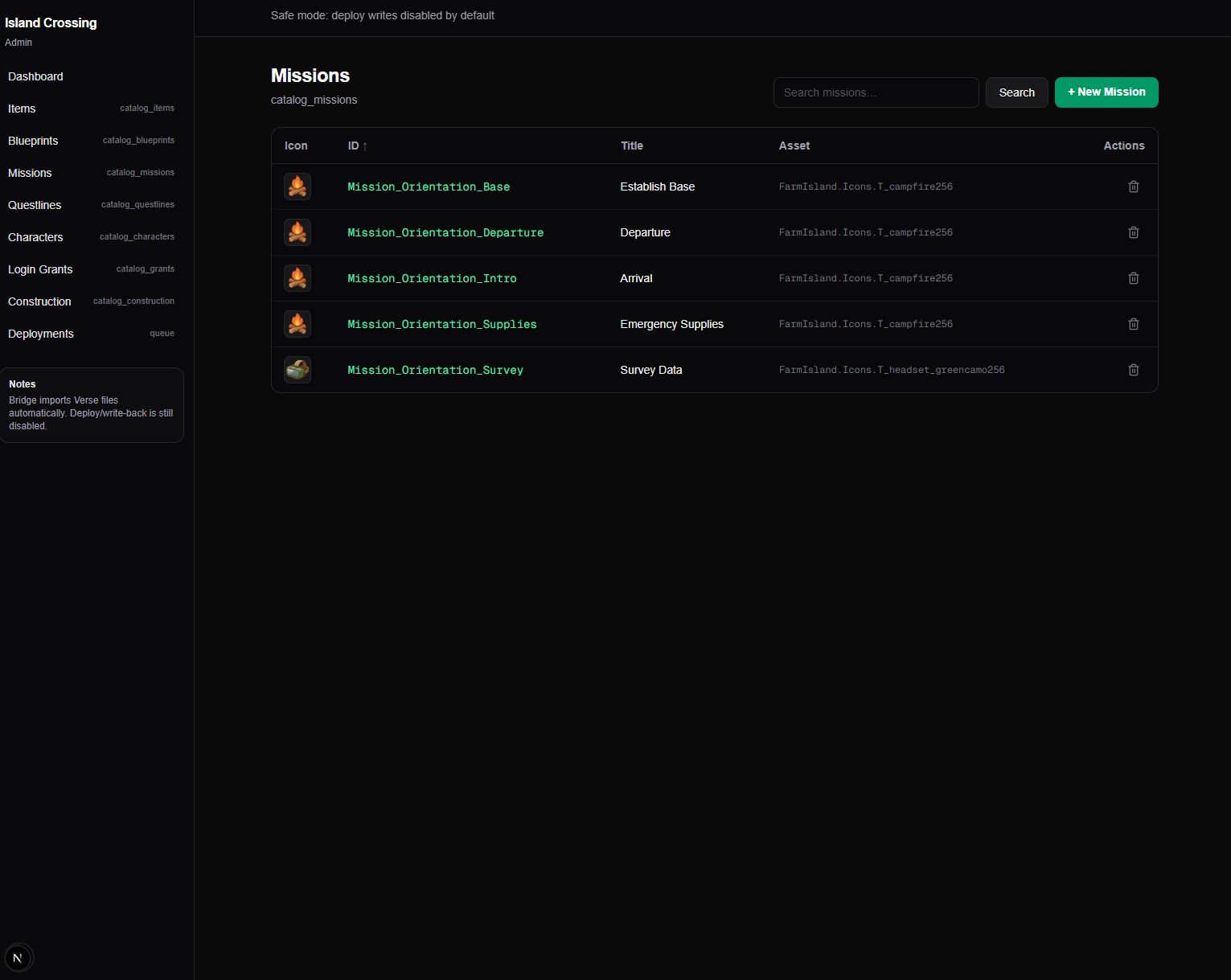 Managing all the data for Island Crossing in Verse code is easier than using creative_devices, but at scale, it’s hard to keep track of everything. I needed a front-end to manage content and live ops—missions, items, events, Discord bots—without digging through code or markdown docs. I wanted to be able to add missions, tweak parameters, and manage live events from one place.